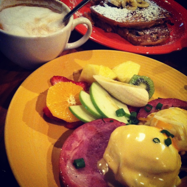 Three girls. Four breakfasts. That’s what brunch at Lost Dog Cafe looks like. Because believe me, you WILL read the menu and be all Sophie’s Choice between the Eggs Benedict piled on top of a fried green tomato (I REPEAT: A FRIED GREEN TOMATO), Canadian bacon, and an English muffin and the Sweet Potato Pancakes (because, Sweet Potato Pancakes!). So, what you will do, is each order a savory breakfast and share the pancakes between the four of you for second breakfast dessert. The side of fruit makes it okay.